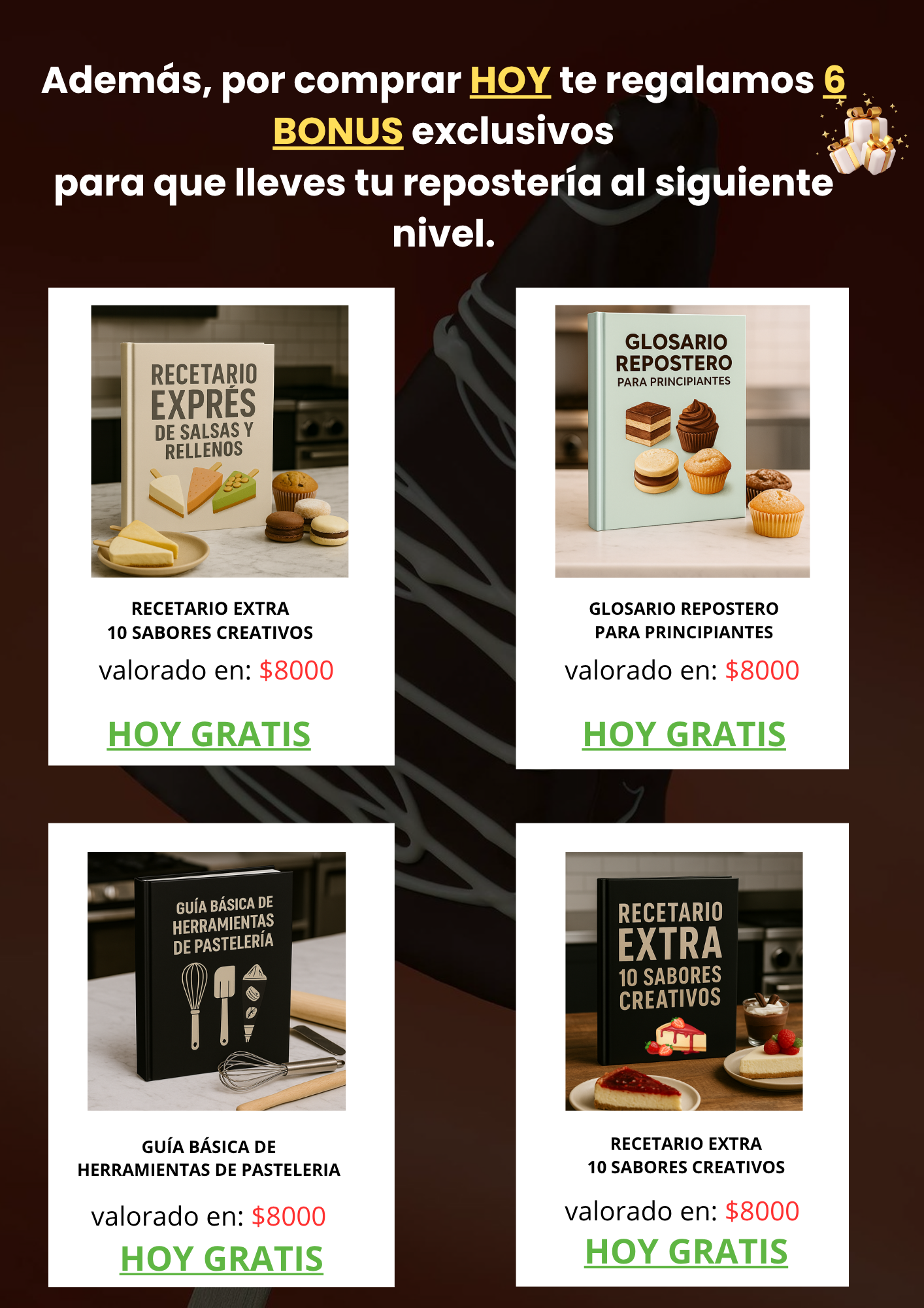 Sí. Además de las recetas, el ebook incluye consejos de presentación, costos y venta, para que no solo cocines, sino que también generes ingresos.